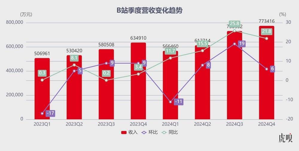 2 月 20 日,B 站公布截至 2024 年 12 月 31 日的第四季度和全年未经审计财务报告,可谓“成绩喜人”: