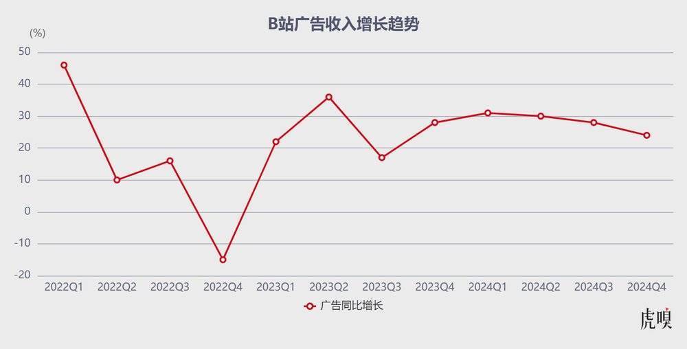 最后,B 站广告业务依旧贡献了不俗的增速,同比增长 24% 达 23.9 亿元,且已连续七个季度增长超20%——要知道,2024Q4 要在双十一这样大促节点扛住其他电商巨头抢食品牌广告依然保持两位数增长,属实不易。